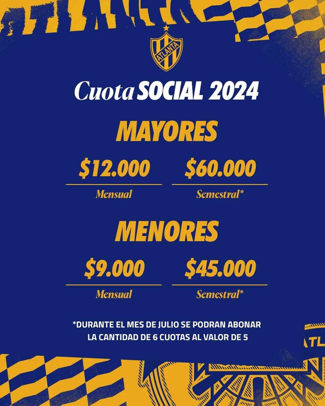 Cuota social y abono platea anual 2026