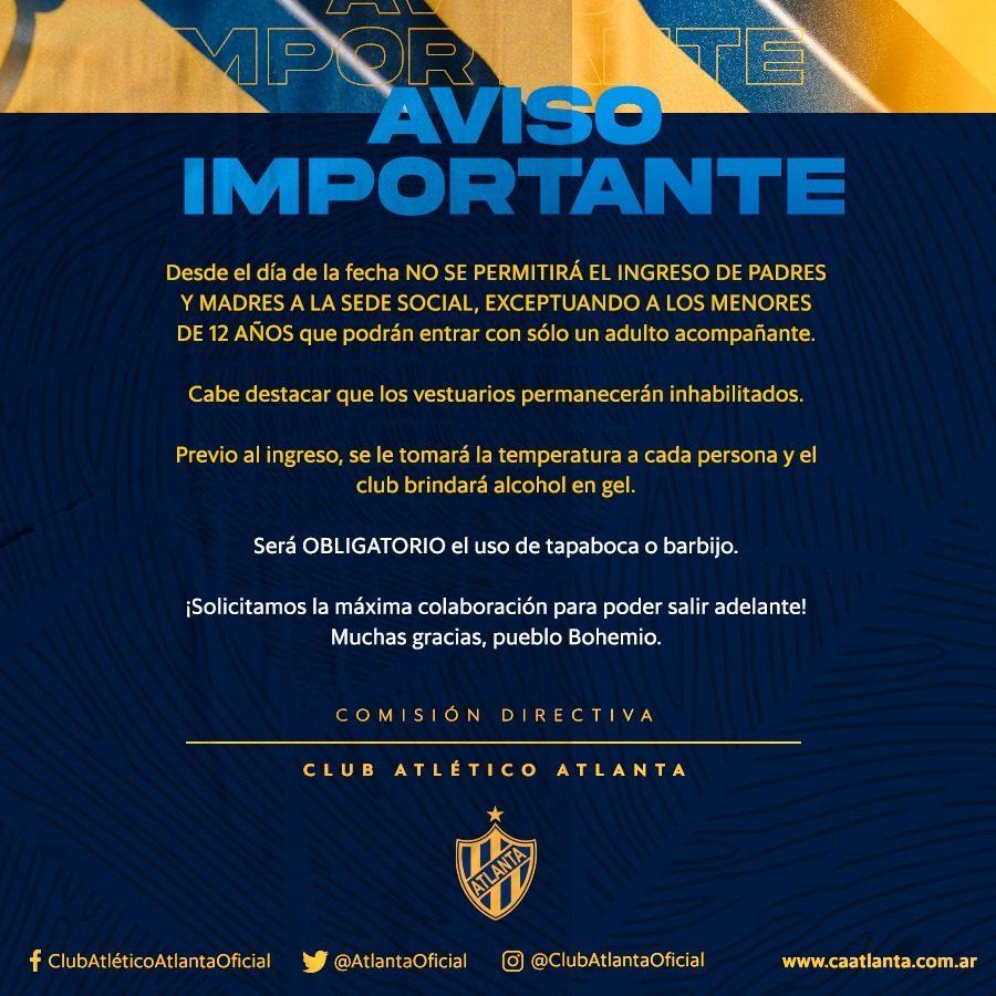 Desde el día de la fecha no se permitirá el ingreso de padres y madres a la Sede Social, exceptuando a los menores de 12 años que podrán entrar con sólo un adulto acompañante.
