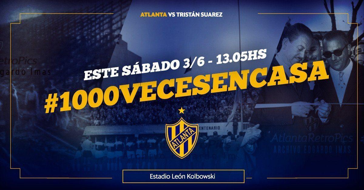 Atlanta llega al partido oficial número 1.000 en su actual estadio. Ello ocurrirá cuando enfrente a Tristán Suárez, el próximo sábado 3 de junio, a las 13.05. Este hito prácticamente coincidirá con el 57.° aniversario de su inauguración, que tuvo lugar el 5 de junio de 1960 ante Argentinos Juniors, por el Campeonato de Primera División. Habrá un homenaje del club a ex futbolistas que disputaron aquel primer partido en el León Kolbowski: Osvaldo Guenzatti, Carlos Timoteo Griguol, Rodolfo Bettinotti, Carlos Zivec y Norberto Desanzo.